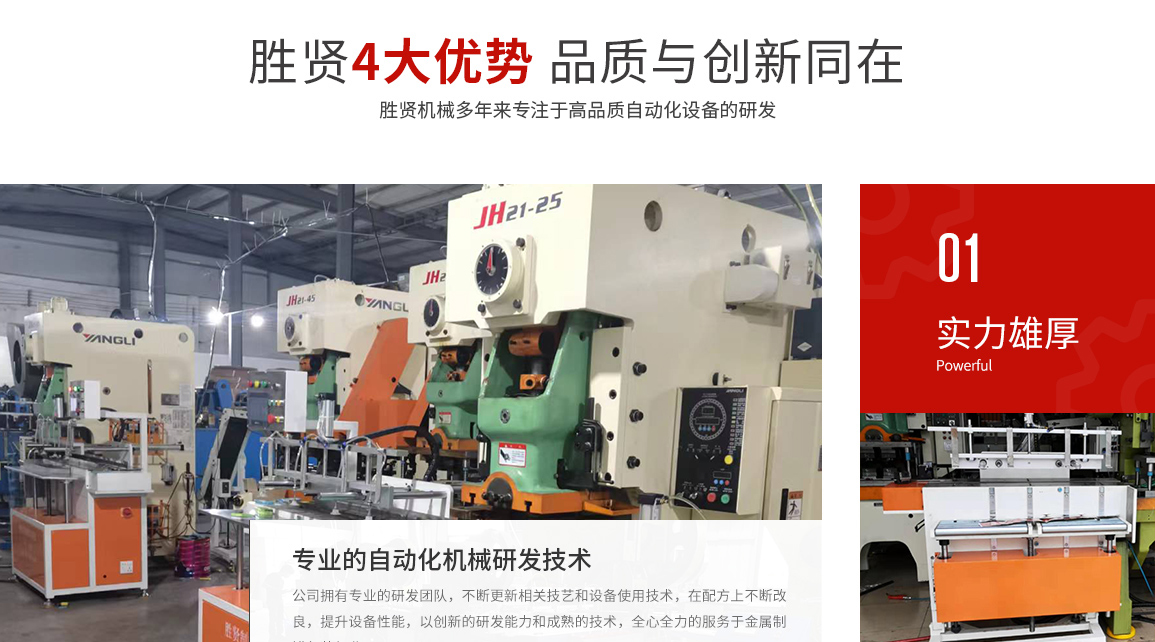 東莞市勝賢機(jī)械設(shè)備有限公司,是一家專業(yè)從事金屬制罐包裝行業(yè)的整套自動(dòng)化設(shè)備和模具開發(fā)、制造與銷售的公司,擁有成熟的技術(shù)和創(chuàng)新開發(fā)能力。我們擁有有一批多年從事設(shè)計(jì)、研究開發(fā)的工程師,和設(shè)備、模具制作的技術(shù)人才。不斷推進(jìn)制罐行業(yè)向高效、環(huán)保、節(jié)能、操作簡(jiǎn)易化的方向發(fā)展。 公司主要產(chǎn)品:多次元機(jī)械手設(shè)備生產(chǎn):含片盒蓋/底自動(dòng)生產(chǎn)線,煙盒蓋/底自動(dòng)生產(chǎn)線,醫(yī)藥盒蓋/底自動(dòng)生產(chǎn)線,茶葉罐蓋圈/酒罐蓋圈自動(dòng)生產(chǎn)線,酒罐蓋自動(dòng)生產(chǎn)線、茶葉罐拍底自動(dòng)生產(chǎn)線等等。 罐身自動(dòng)扣骨機(jī)生產(chǎn):茶葉罐/酒罐/化妝品罐/內(nèi)衣罐等等. 其中多次元機(jī)械手專為兩片盒的生產(chǎn)和三片罐的蓋、底、蓋圈、拍底蓋等的生產(chǎn)而設(shè)計(jì),...